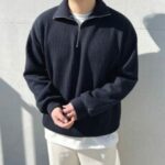 남성 2컬러 베이직 간절기 카라 반집업 니트